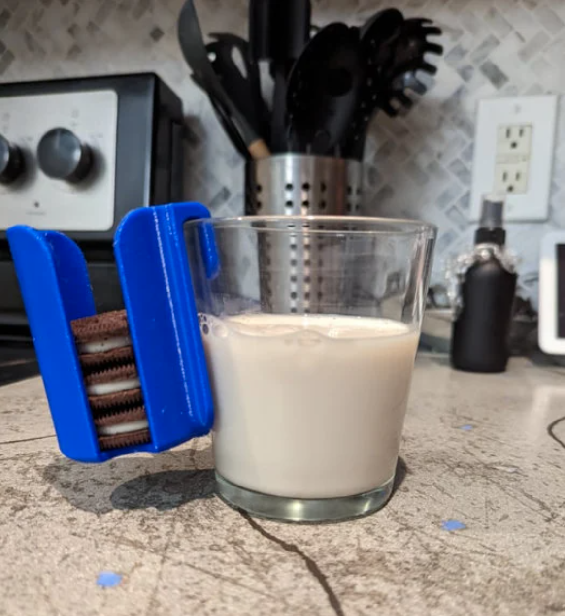 If you're going to eat Sandwich Cookies, you MUST have a glass of cold milk to dunk them in. :) This clever contraption neatly holds your cookies right at the edge of your cold glass of milk. This is the perfect gift for someone who loves the tasty combo of milk and cookies. Holds 6 cookies. For Girl Scout cookies, it depends on the size. NOT all Girl Scout cookies fit. This is the perfect gift for someone you love! Choose ANY color!