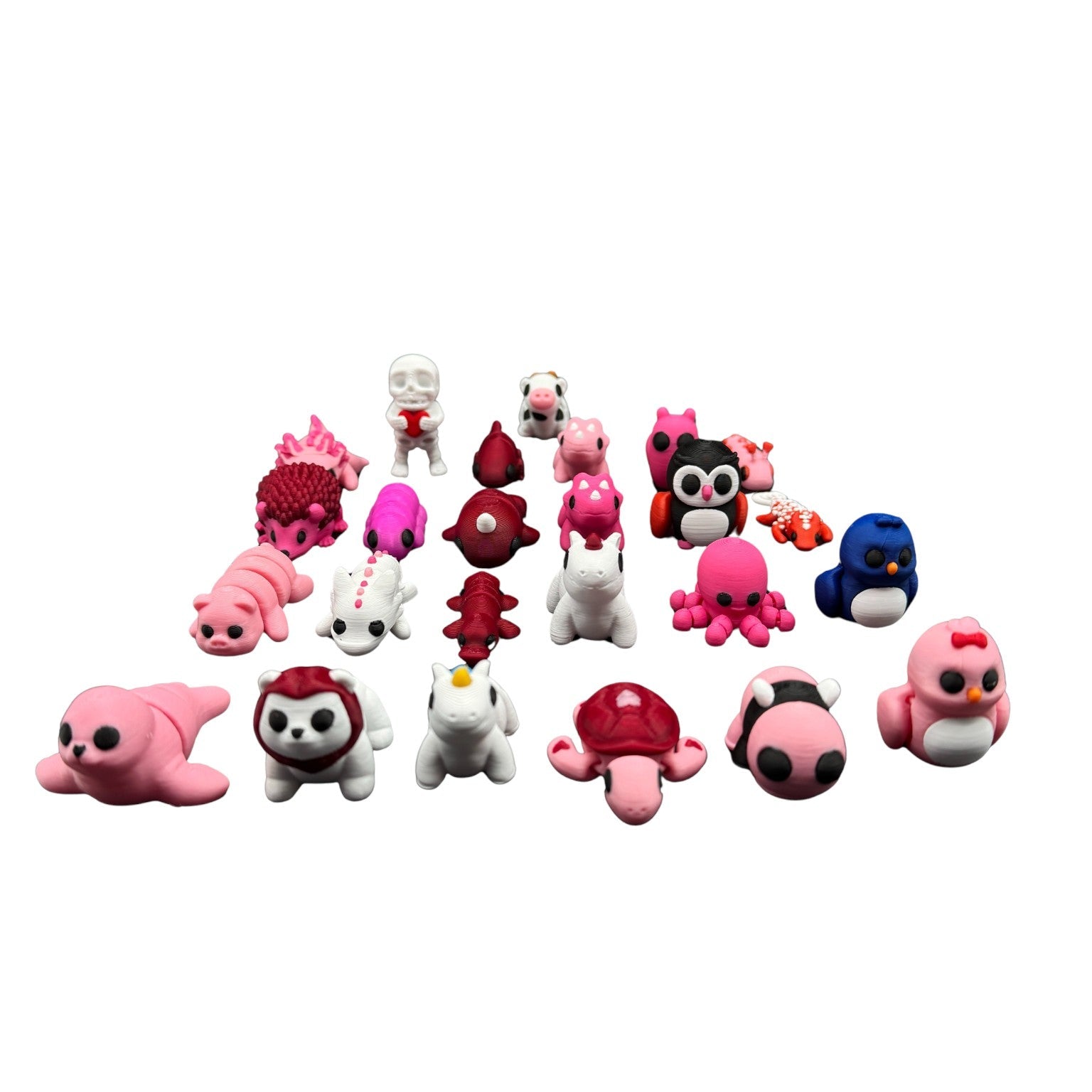 Make Valentine’s Day extra special with this adorable pack of Valentine-themed mini articulated figurines. Sold as a 5, 10, or 20-pack, each set includes a variety of charming animal-themed designs in vibrant colors. The included heart-shaped storage box makes it the perfect gift for your loved one, whether for friends, family, or a special someone. Each variety pack is random, ensuring a unique surprise in every set, with slight color variations that add to the charm of each figurine. Give the gift of fun and creativity this Valentine’s Day with these adorable mini animals. Whether as a gift for kids, friends, or your significant other, this charming set is sure to bring a smile to anyone's face.